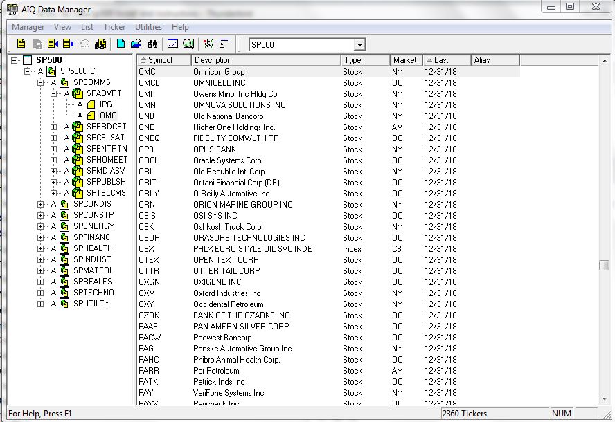 The SP500 structure in AIQ Charts and Data Manager showing new group and sector naming shown below
