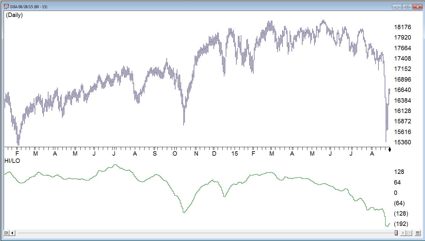 For those who were willing to hear what the market was saying, there was some advance warning that trouble was brewing. A glance at Figure 1 shows us that the major market measures – the Dow, the S&P 500 Index, the Russell 2000 small-cap index and the Vanguard Total World Stock Index ETF – were all breaking down below their respective 200-day moving averages prior to “the Plunge”.