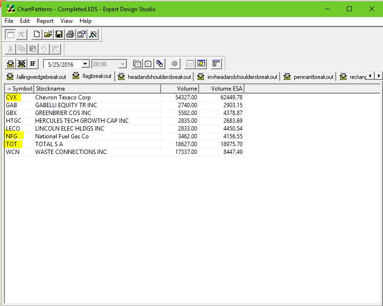 The entire list of stocks that generated completed flags in our nightly report on 5/25/16 is below.