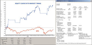 For the test period 1/3/2000 to 1/6/2011, the average annual return was 18.8% with a maximum drawdown of 68.8% on 11/20/2008. Although the return is reasonably good, the maximum drawdown is larger than most could tolerate. With this in mind, I added a very simple market timing technique that added the following rules: