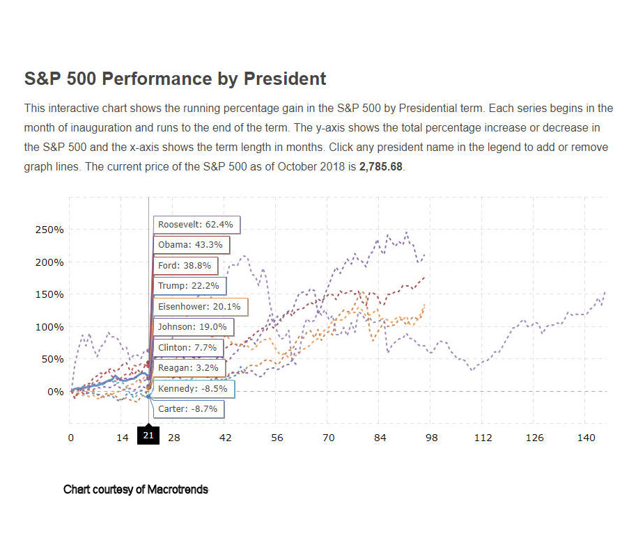 I often wondered just how much influence a President has on the stock market and found this interesting chart from Macrotrends.