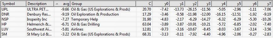 Interestingly a quick check of the Oil & Gas US Explorations and Production group for the same period revealed an average decline of -3.67% in August. The entire group was down 6 of the last 7 years in August. I have 38 stocks in this group in my database.